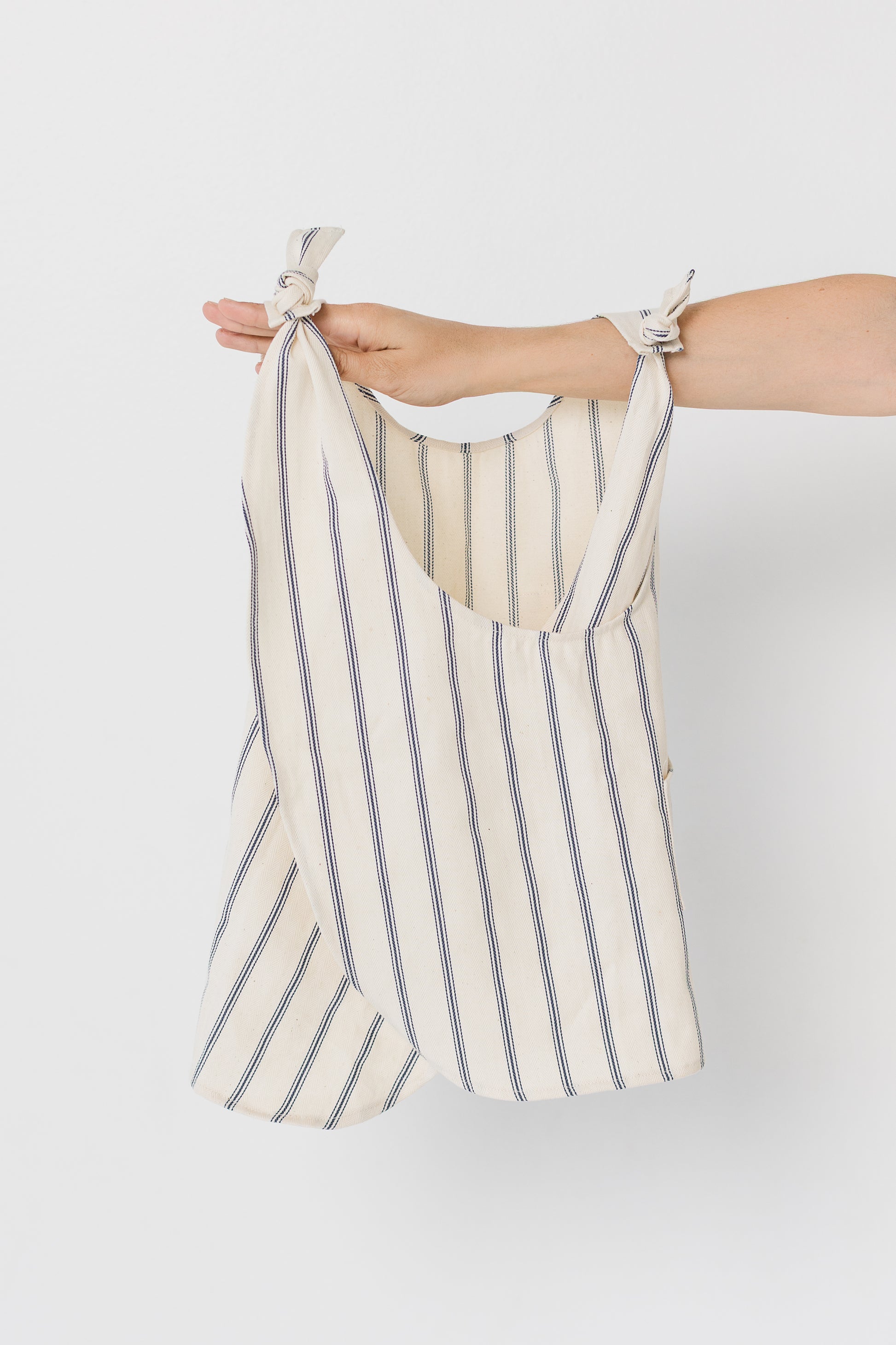 *Beskikbaar in n blou streep (in beperkte hoeveelhede), asook katoen canvas met jou keuse van Olyf of Poeier Blou sakke.